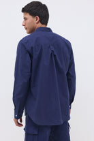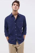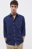 Fitted shirt with long sleeves and a structured collar. Features a front left pocket and full-length button closure.