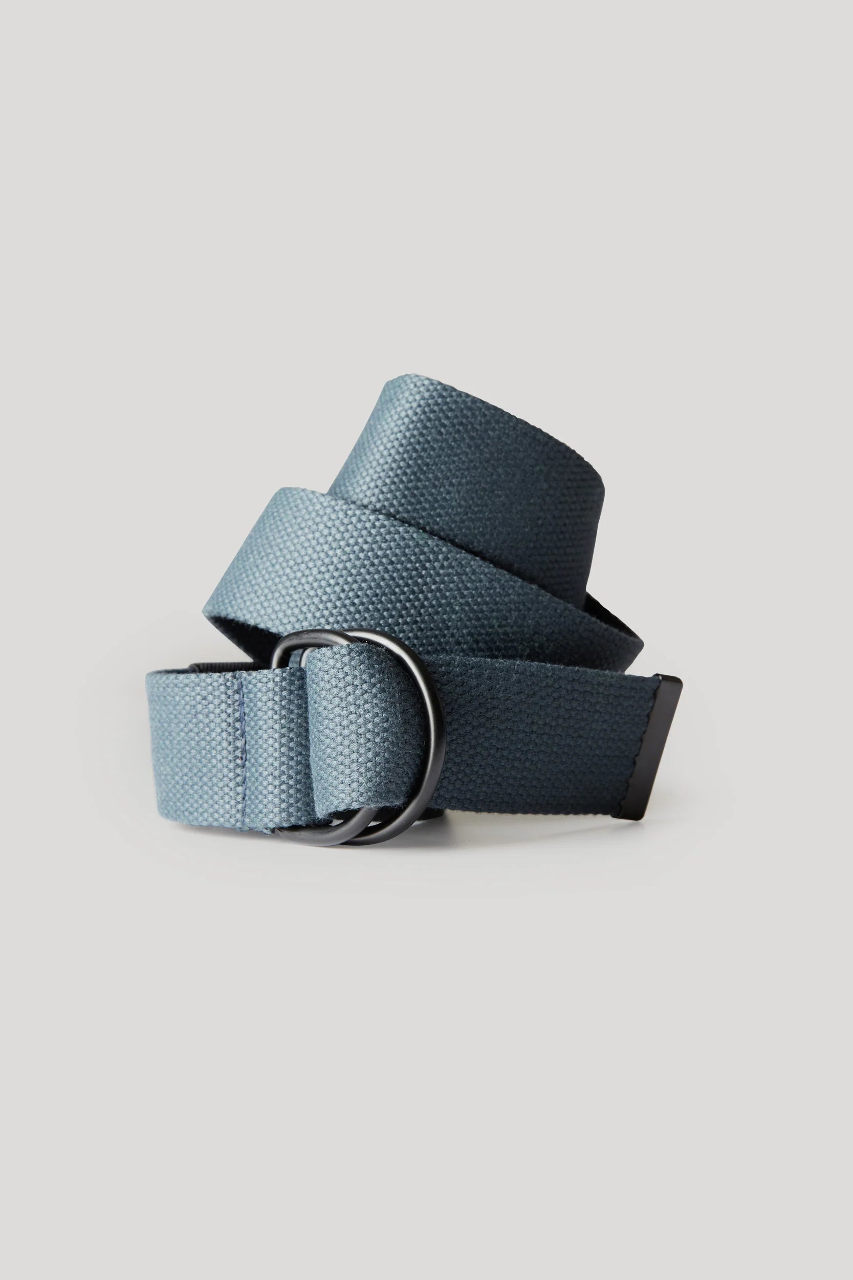 Classic cotton fabric belts are available in stone, black, navy, chocolate, and olive. The belts come in two adjustable lengths, featuring durable metal buckles