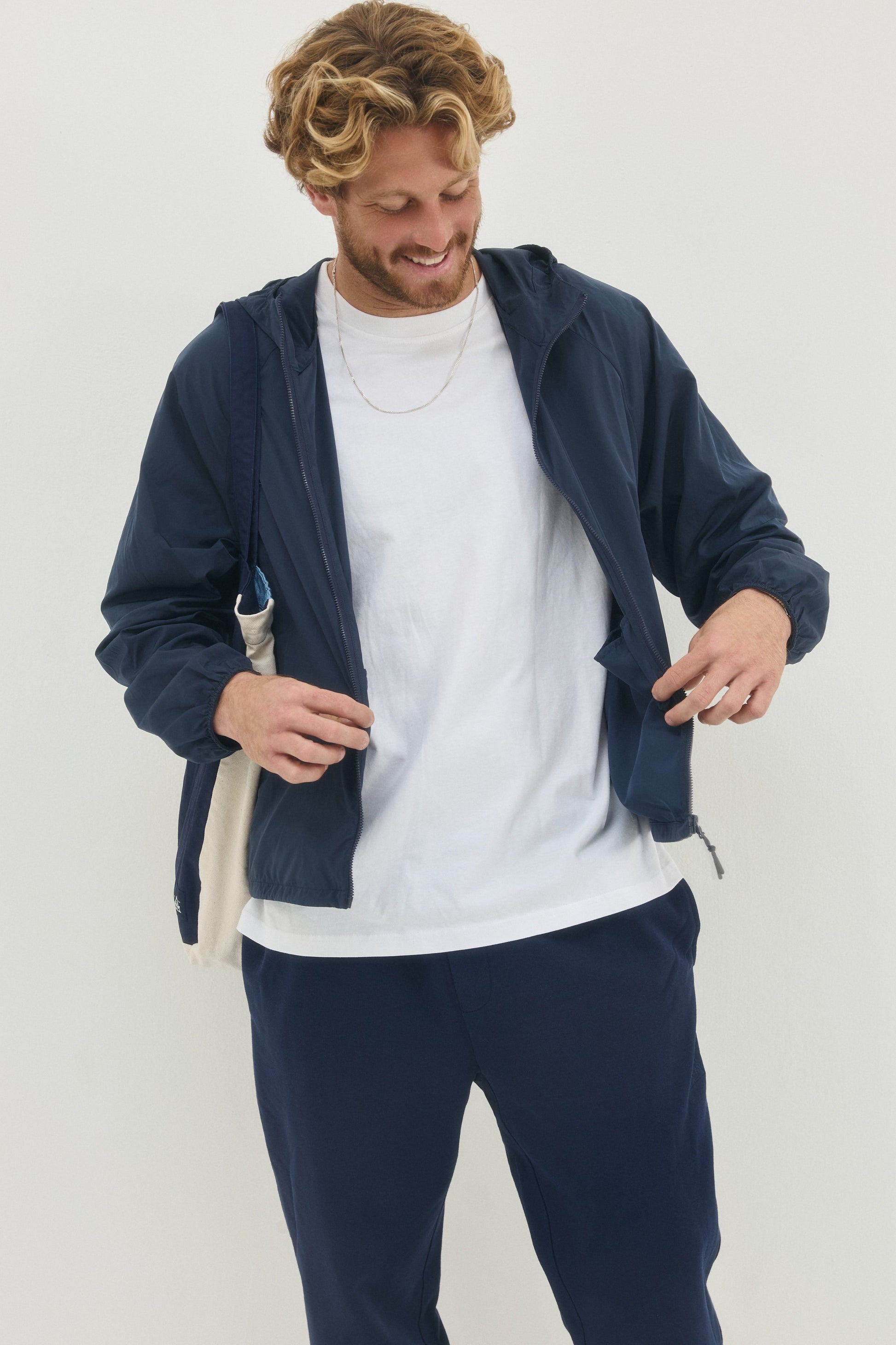 Jaket made of 80% polyester, 20% nylon. The fabric has a coating that allows water to repel off the surface and provides wind protection (water-repellent).