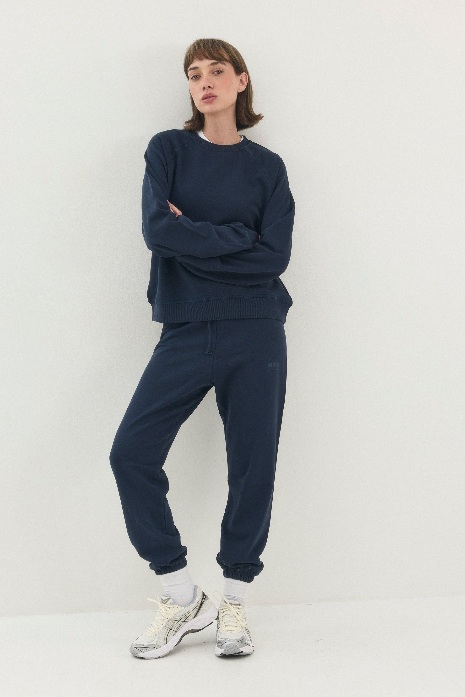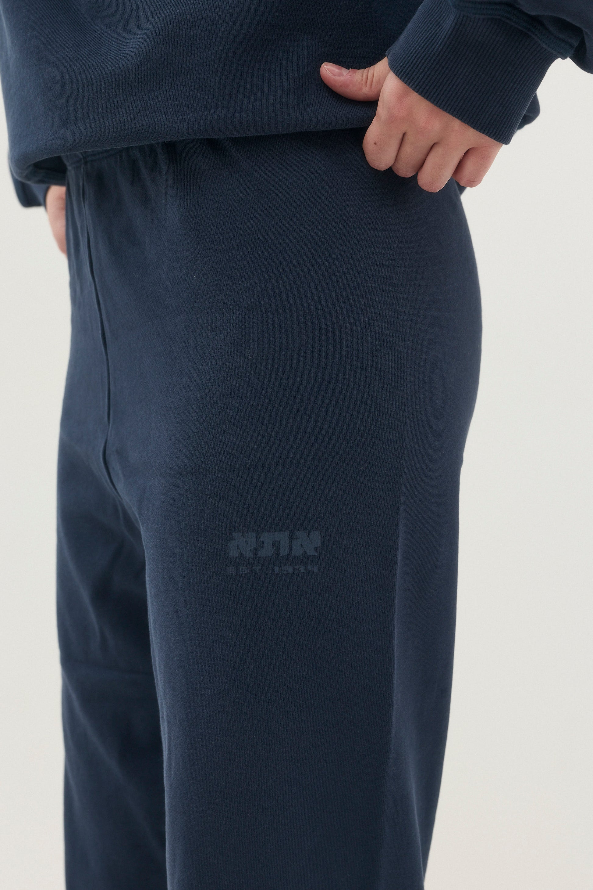 Straight-cut sweatpants with an elastic waistband and adjustable drawstring, and elasticized cuffs at the hem.