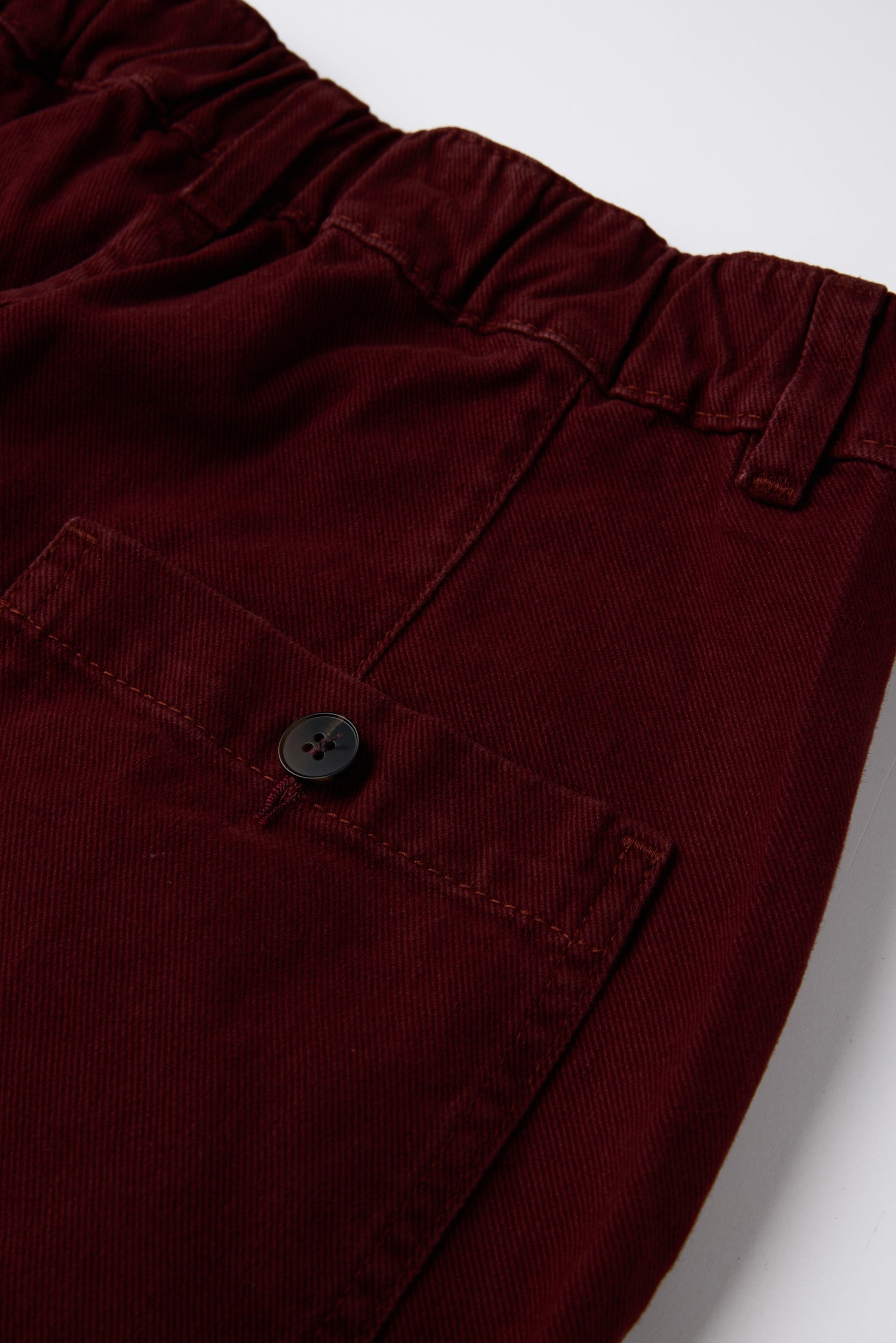 Chino trousers with an elasticated waistband at the back and two back pockets.