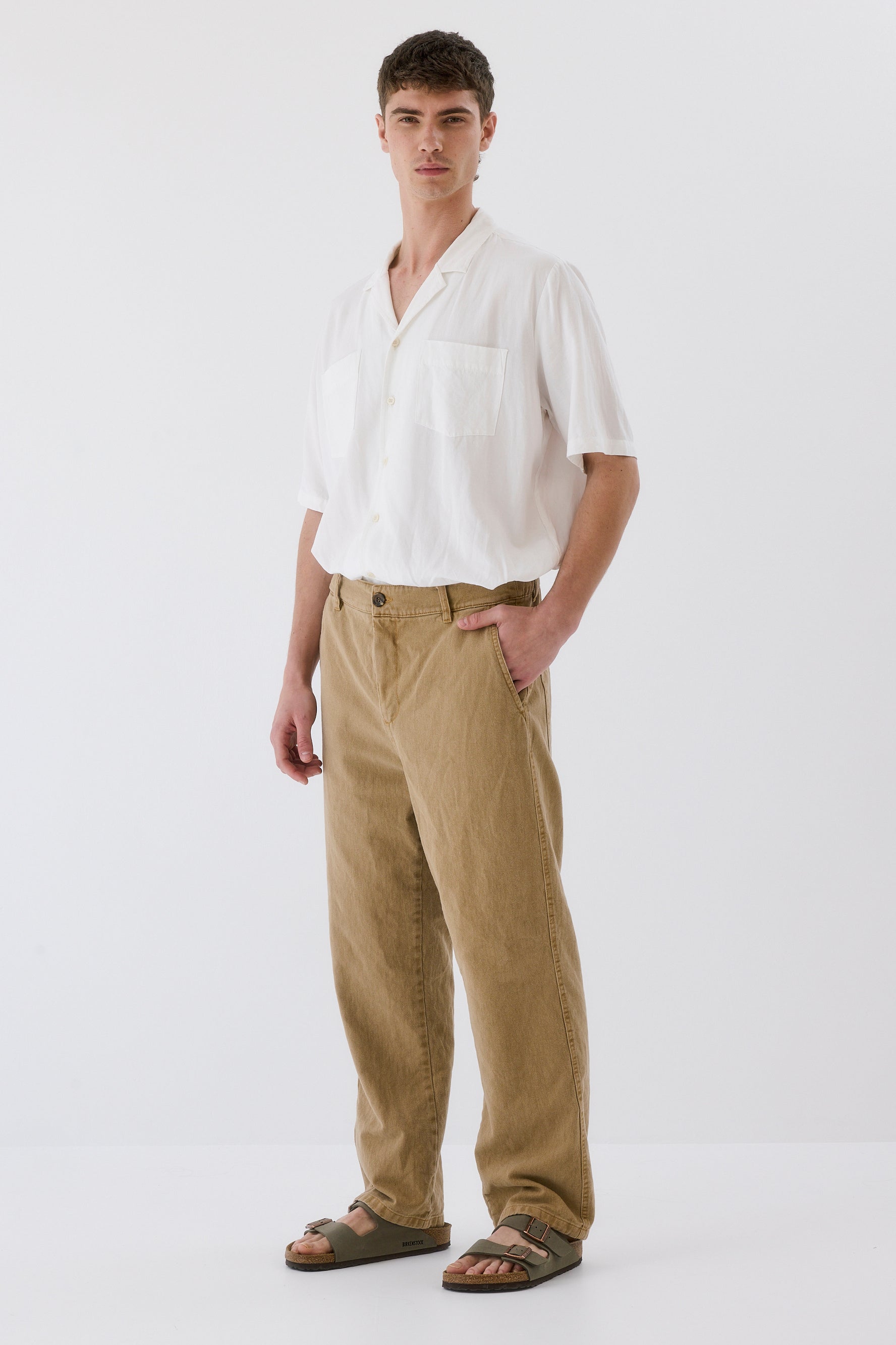 Chino trousers with an elasticated waistband at the back and two back pockets.