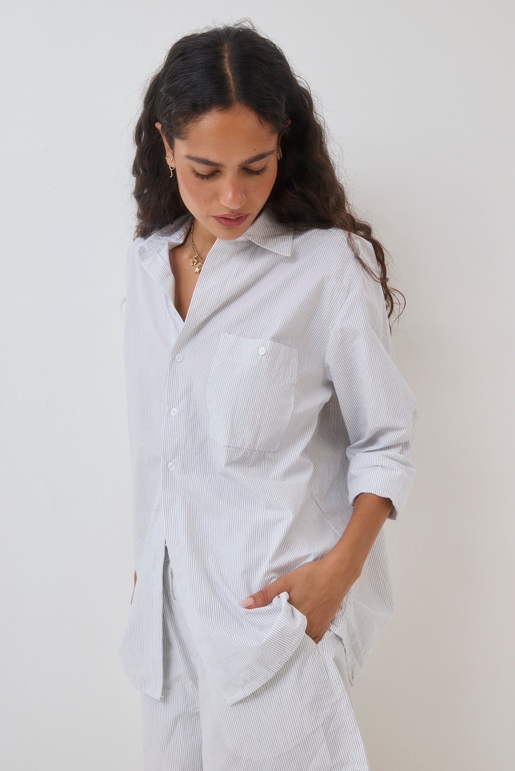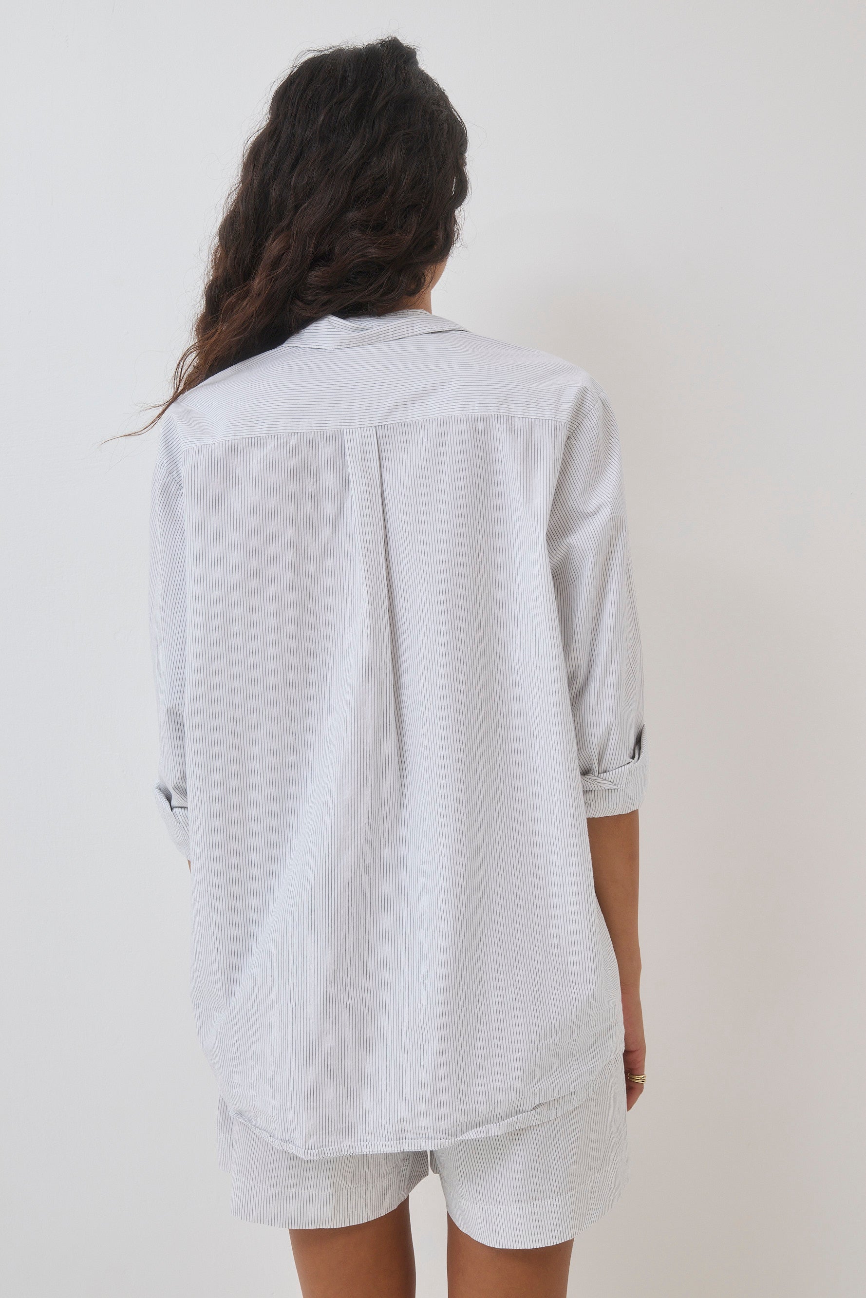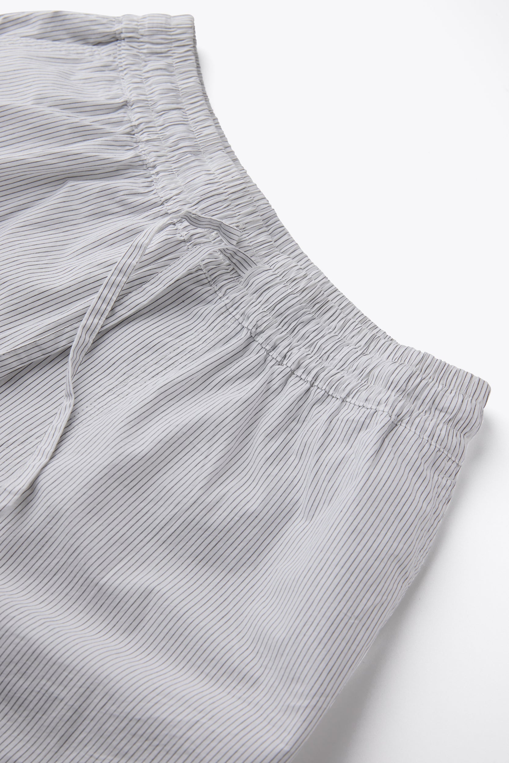 Relaxed-fit cotton shorts with an elastic waistband, adjustable drawstring, and two side pockets. Their cut is reminiscent of classic boxer shorts.