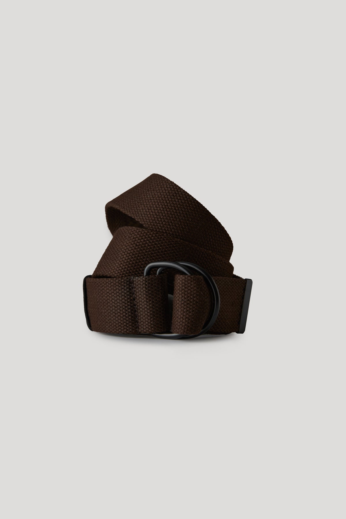 Classic cotton fabric belts are available in stone, black, navy, chocolate, and olive. The belts come in two adjustable lengths, featuring durable metal buckles