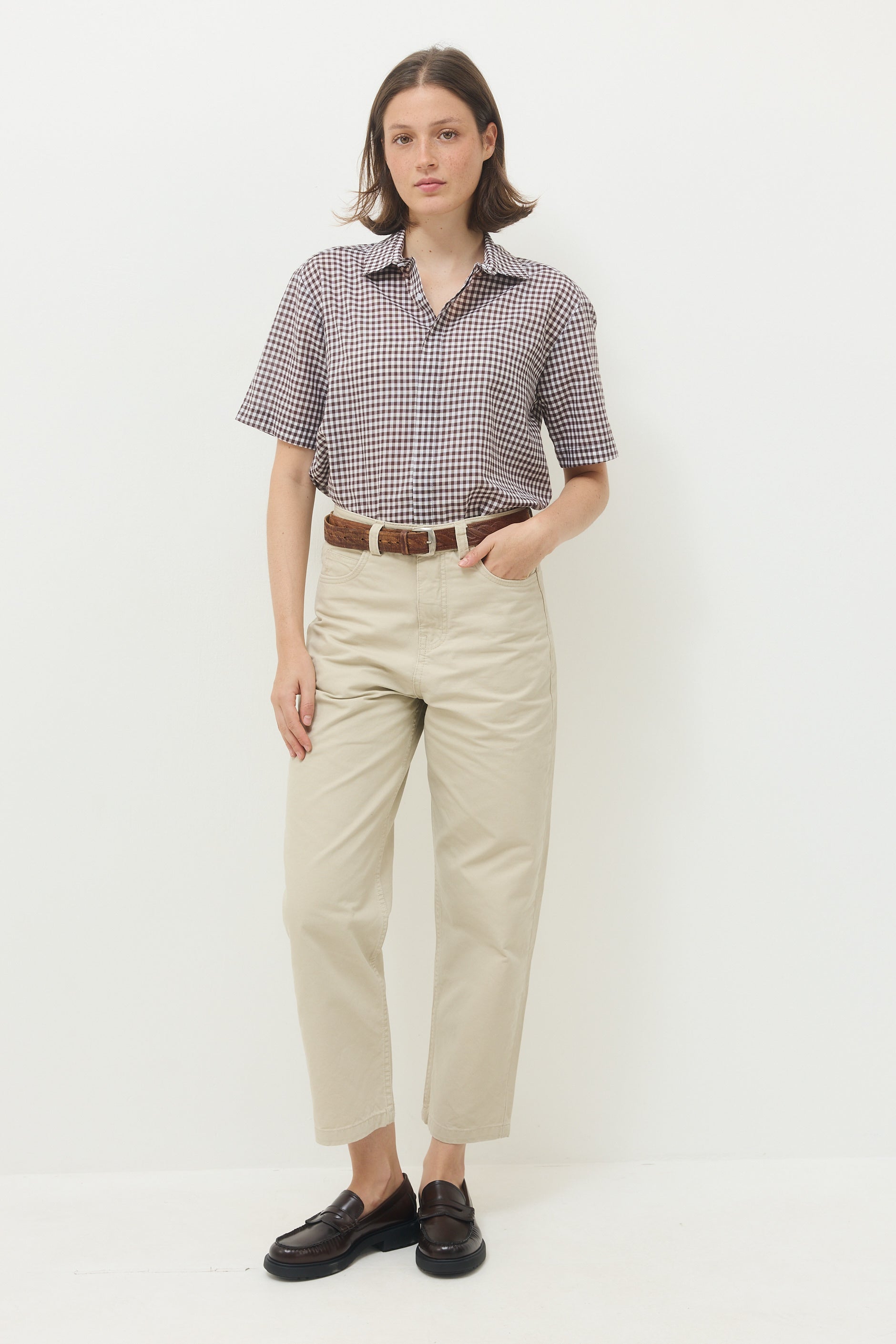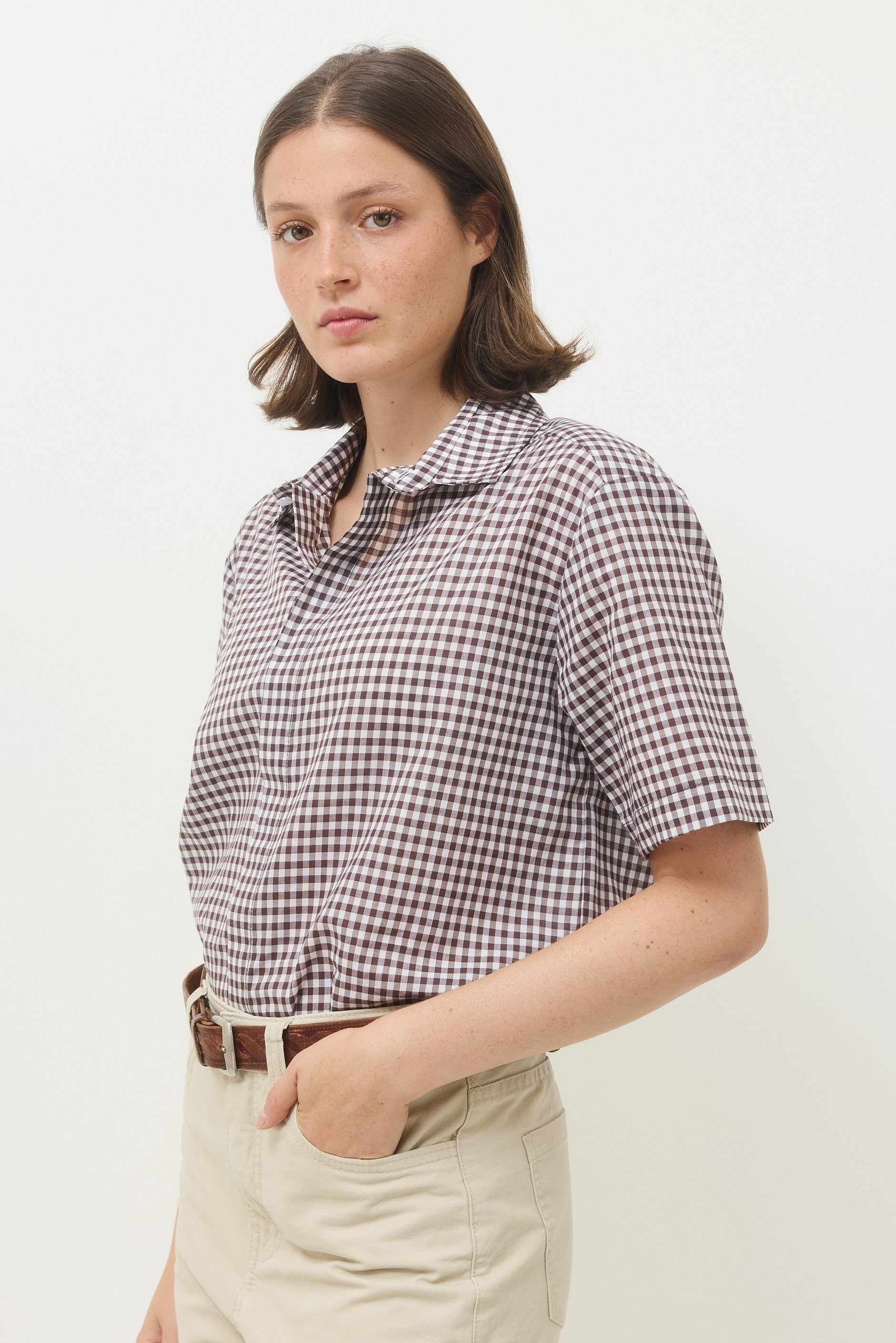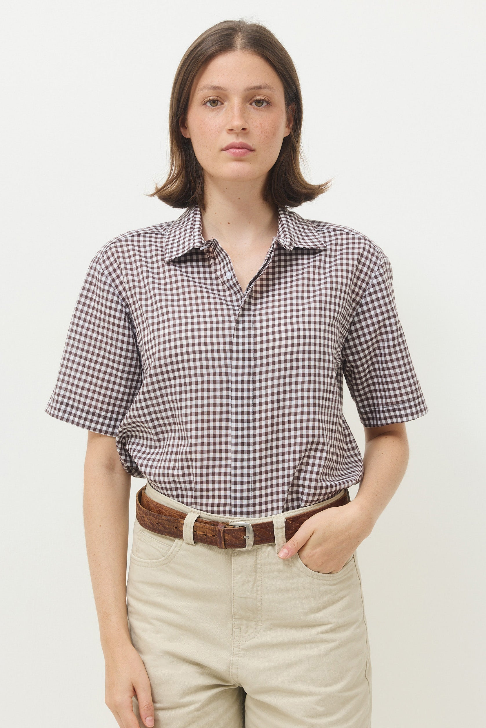 Button-down shirt in a straight fit with hidden buttons and short sleeves.