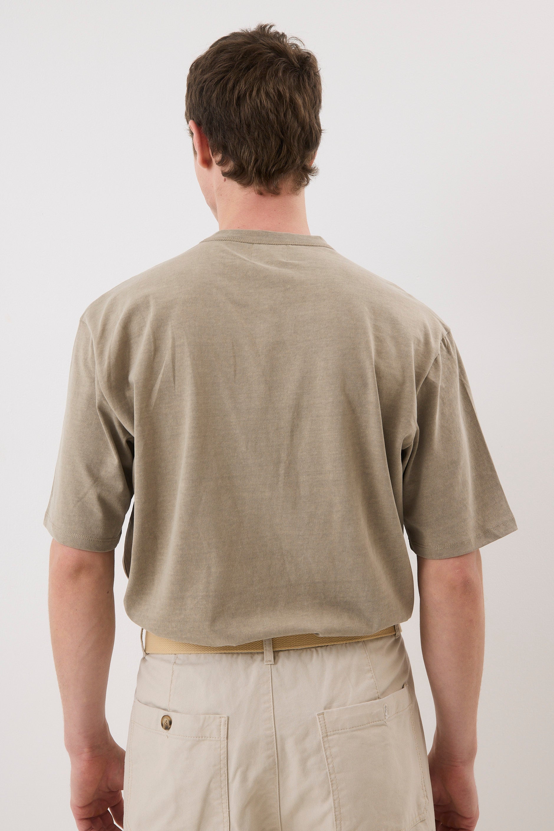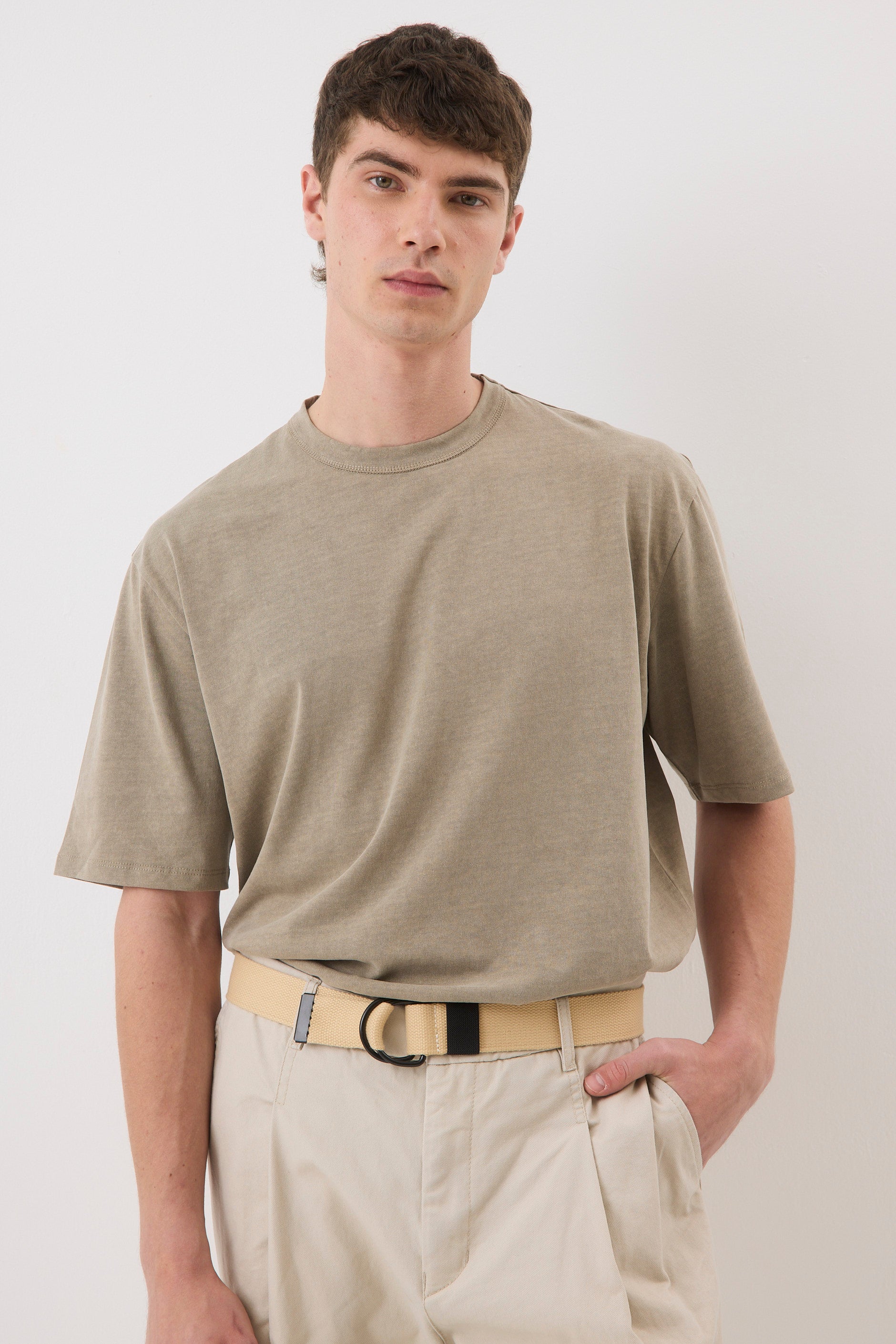 Ribbed T-shirt, emphasized stitching, in a straight cut with a round neckline.