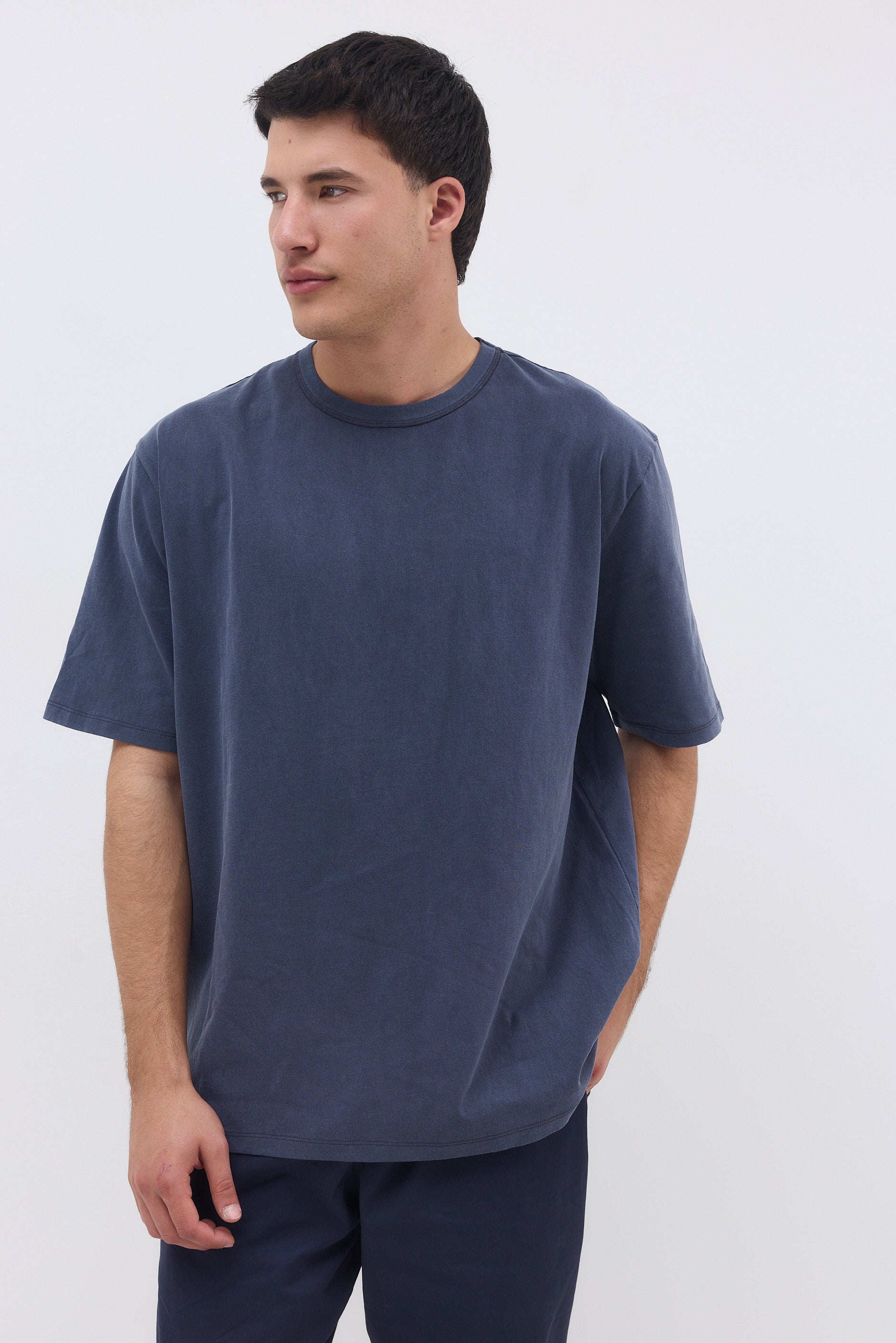 Ribbed T-shirt, with emphasized Ocean stitching, in a straight cut with a round neckline.