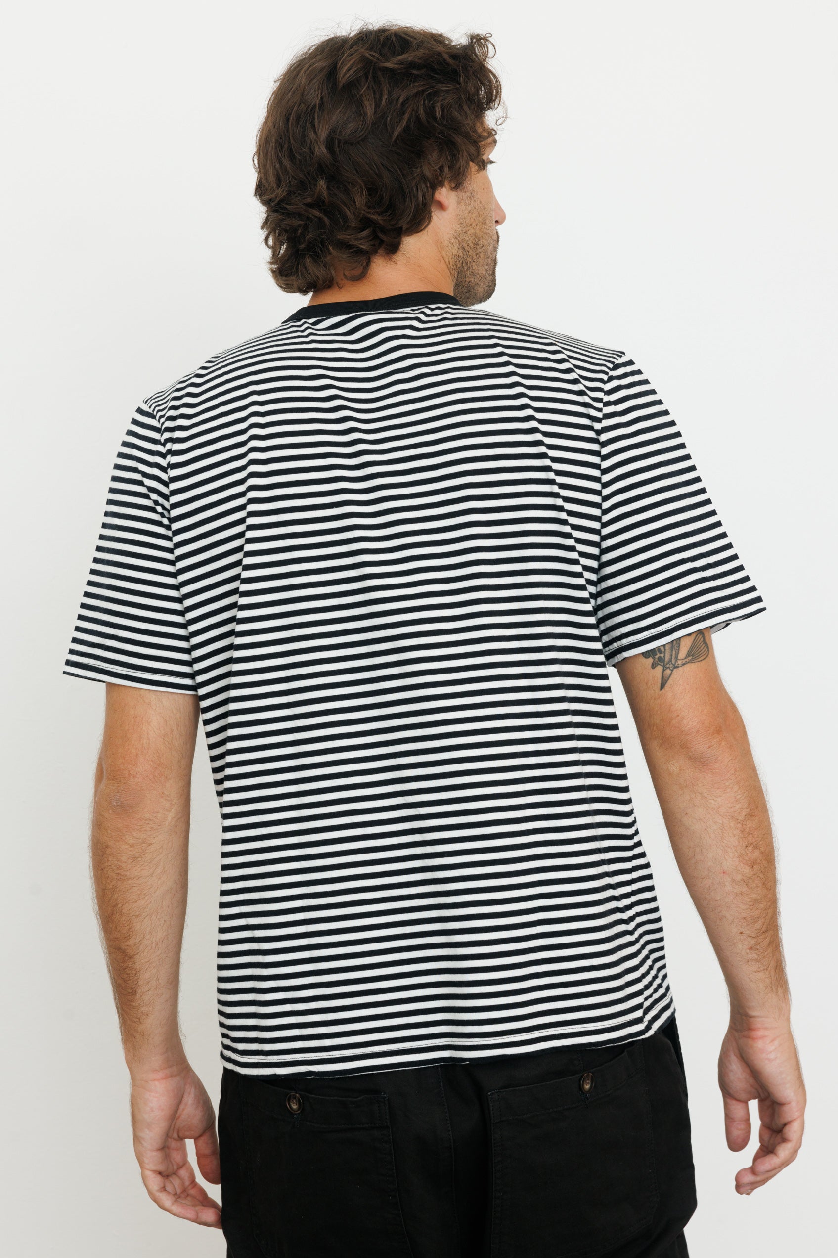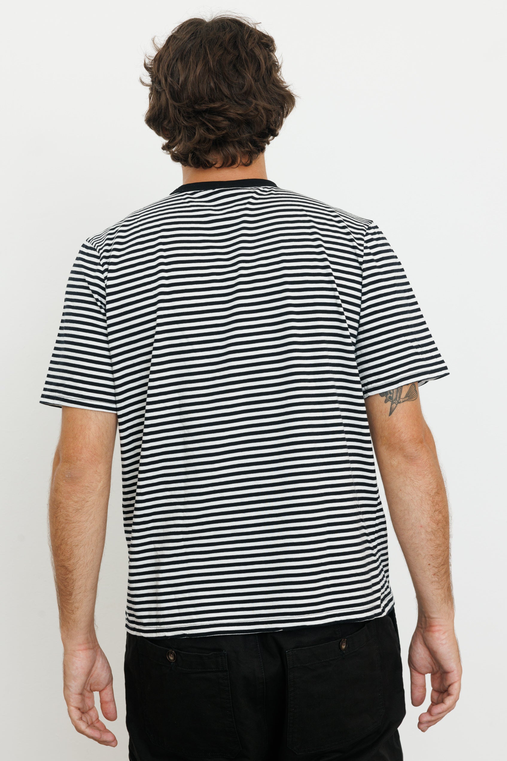 A straight-cut T-shirt with a crew neck made from ribbed fabric.