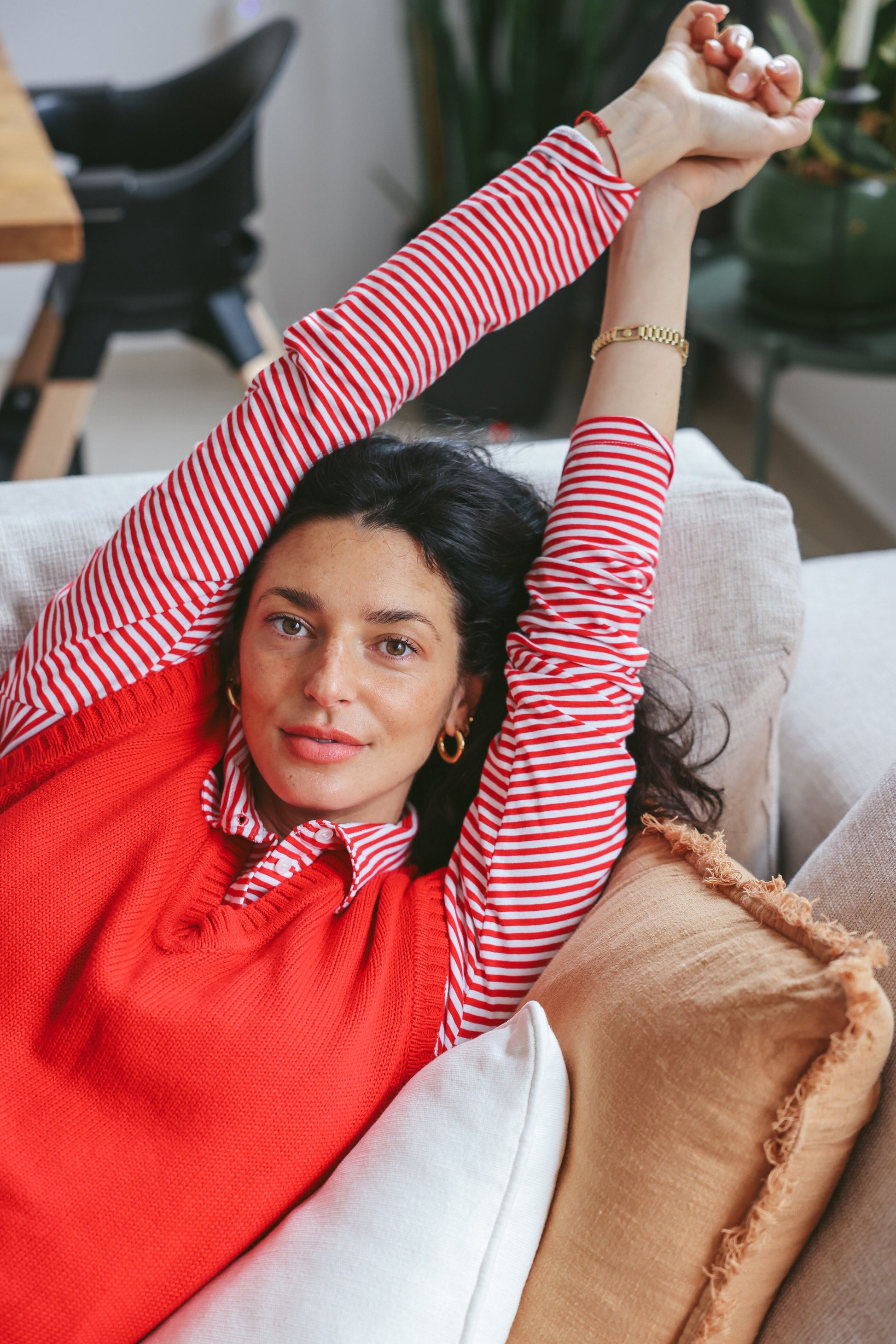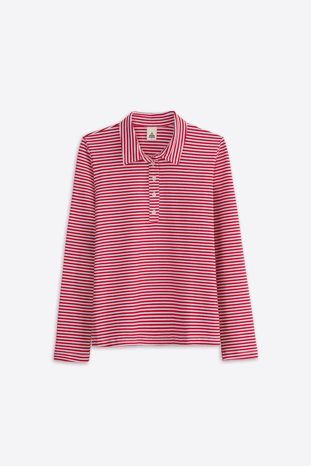 Long-sleeve T-shirt with a fitted silhouette, featuring a collar and 4 buttons.