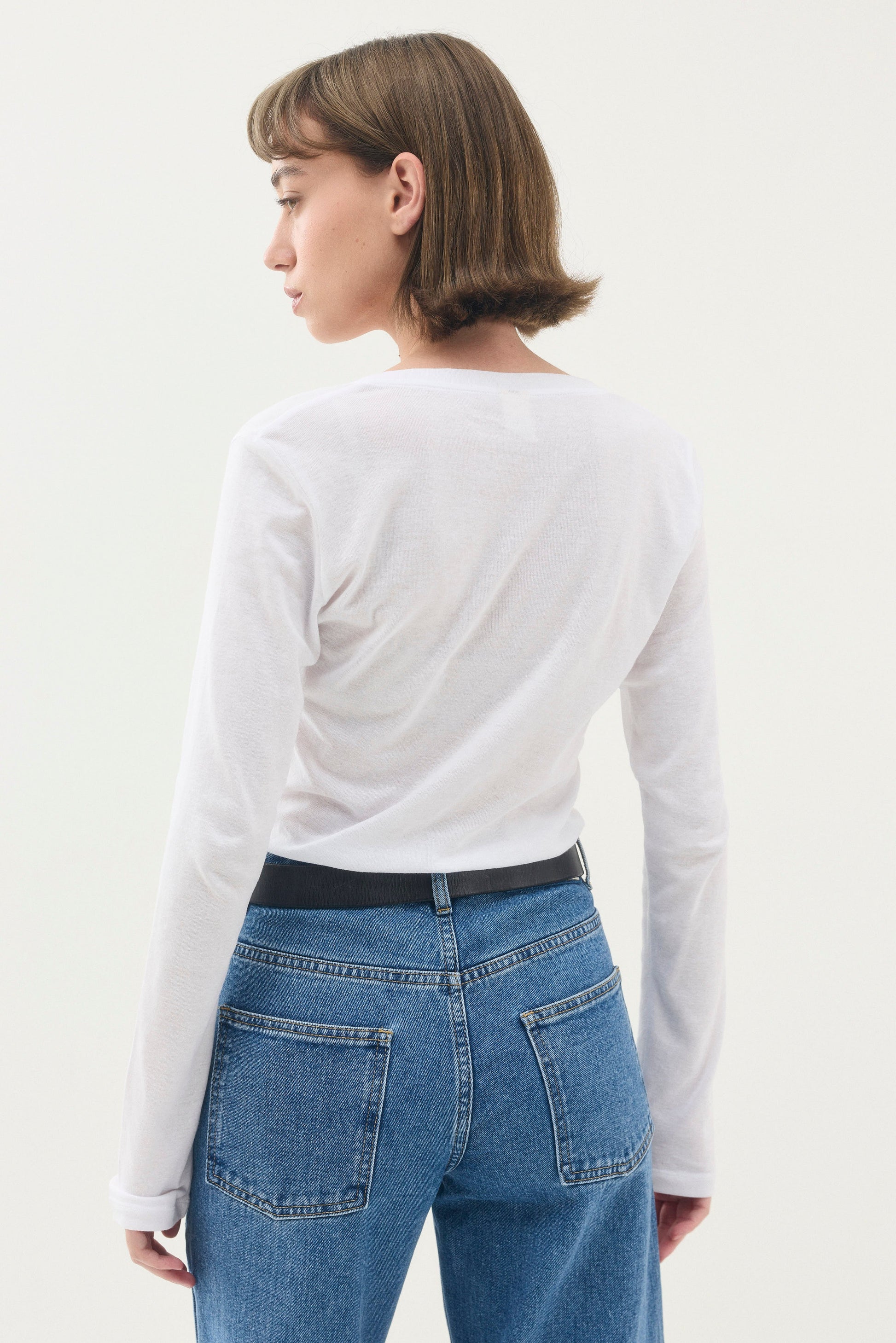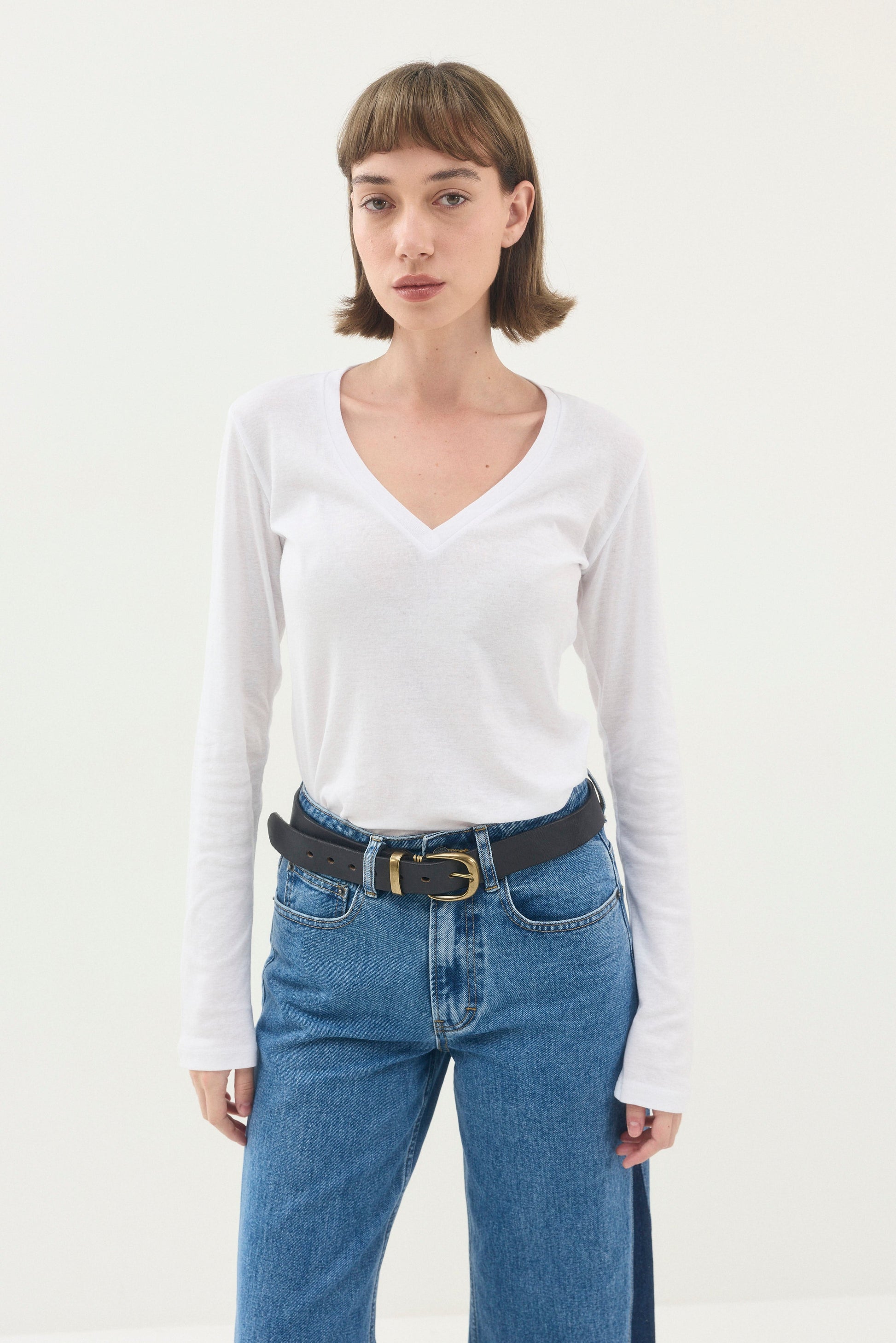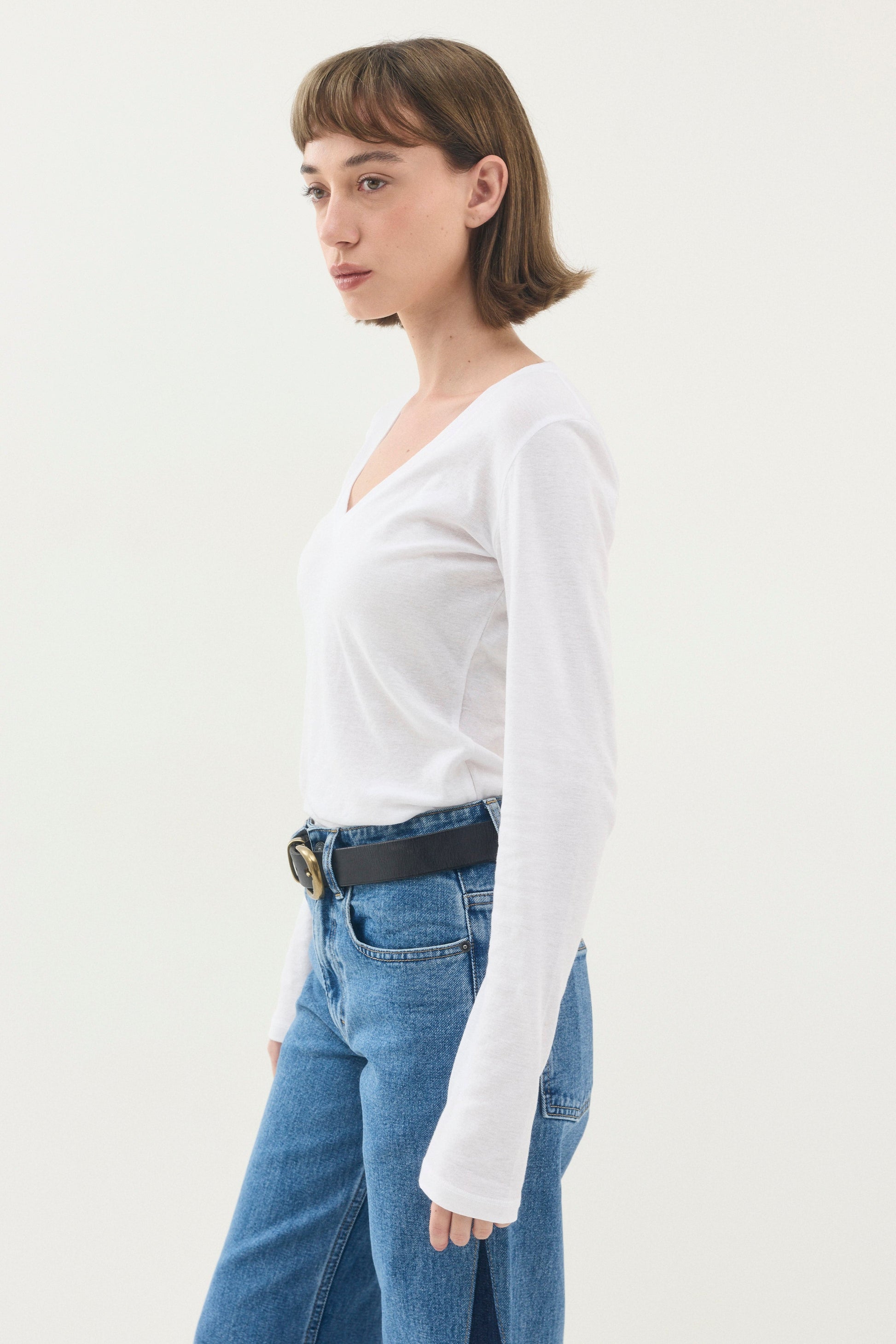 A soft, lightweight shirt with a close fit and a V-neckline. Classic straight cut.