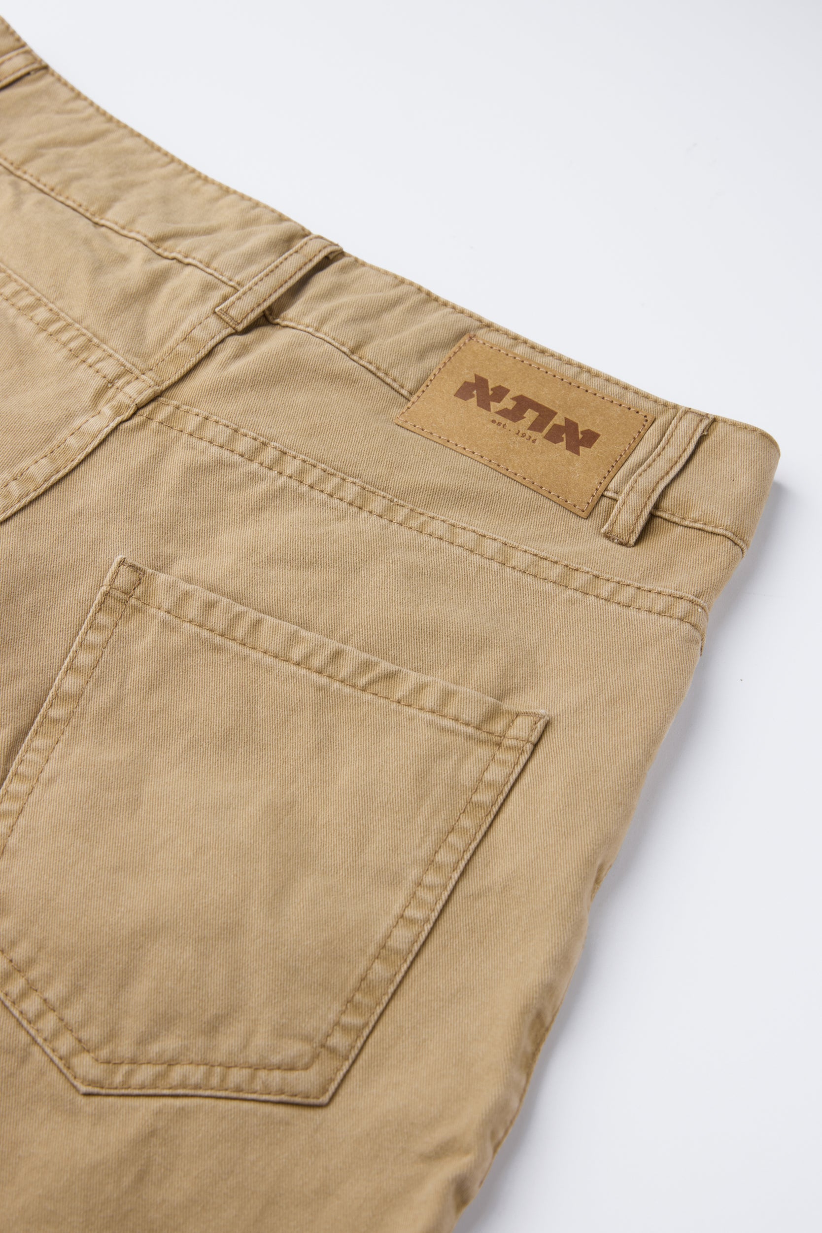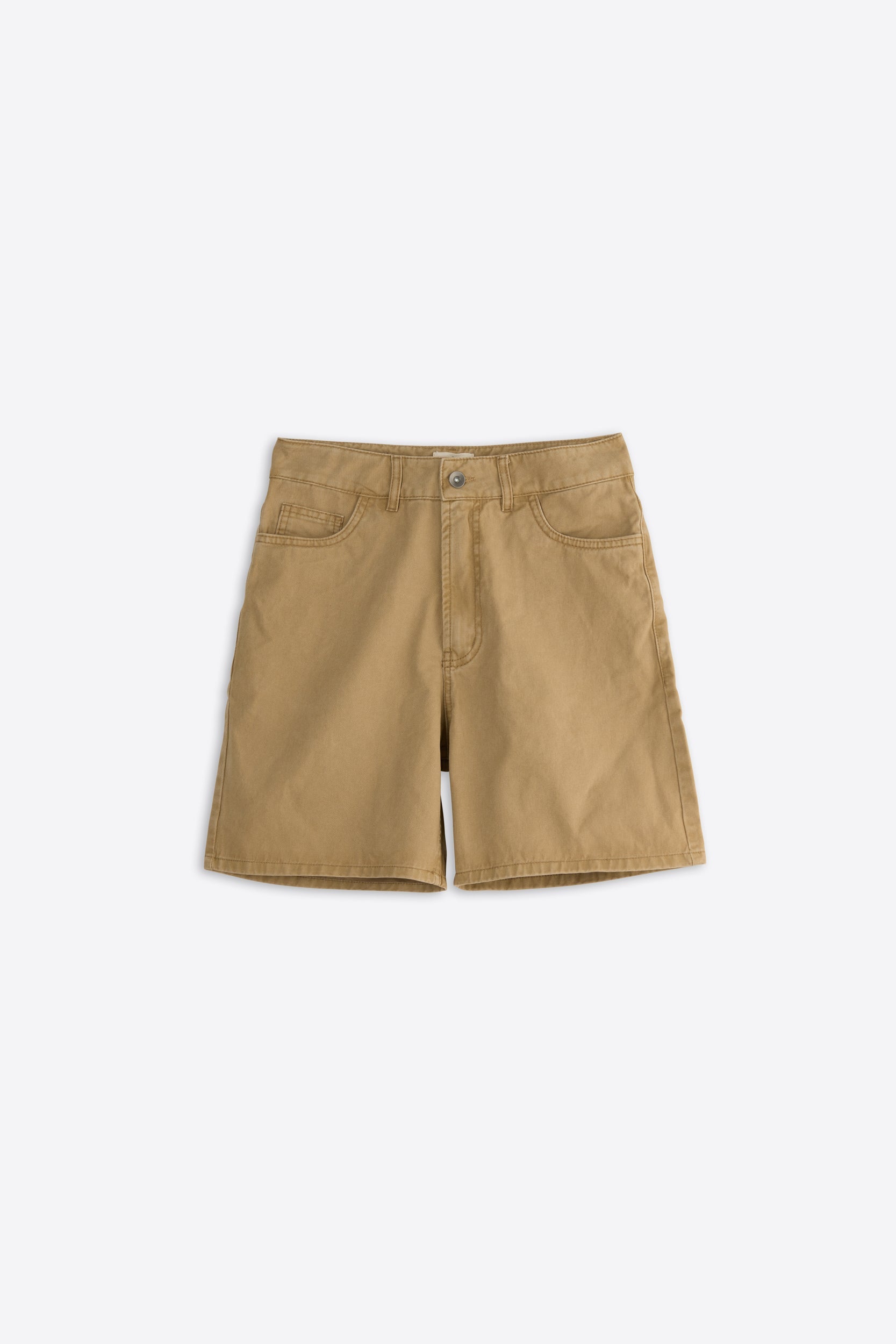 Fitted cotton shorts, with mid-rise waist. Five-pocket design. For a looser fit, take one size up.