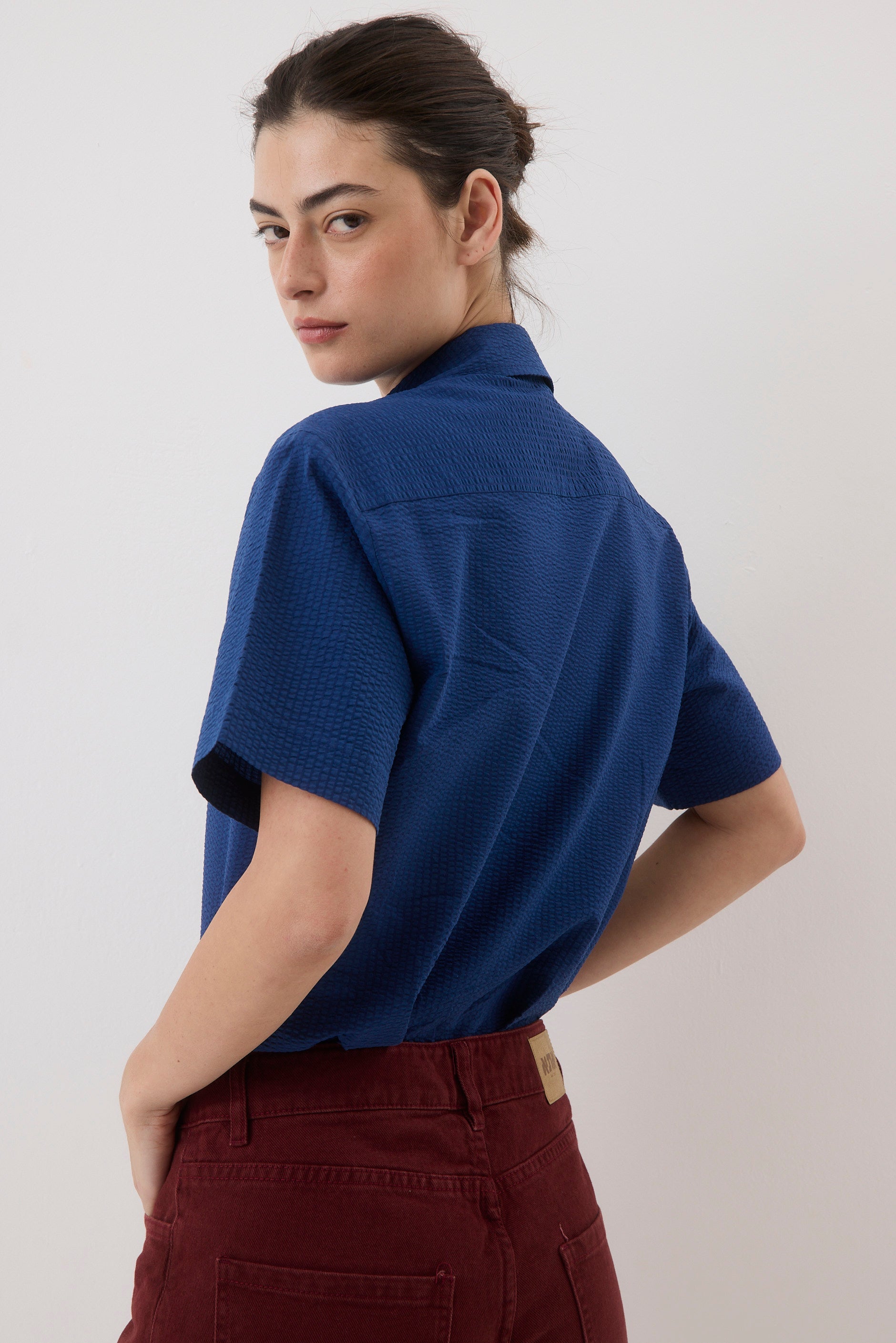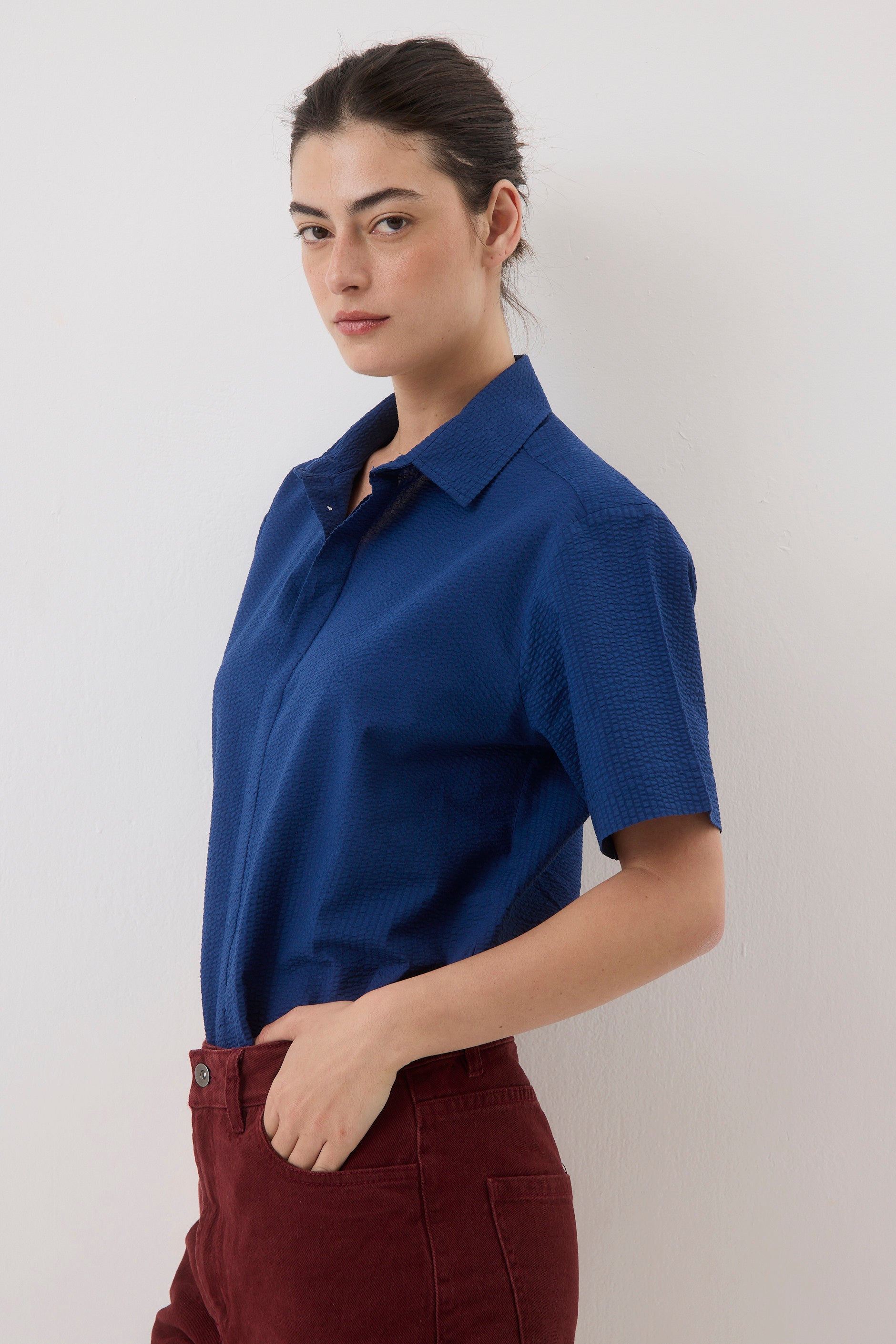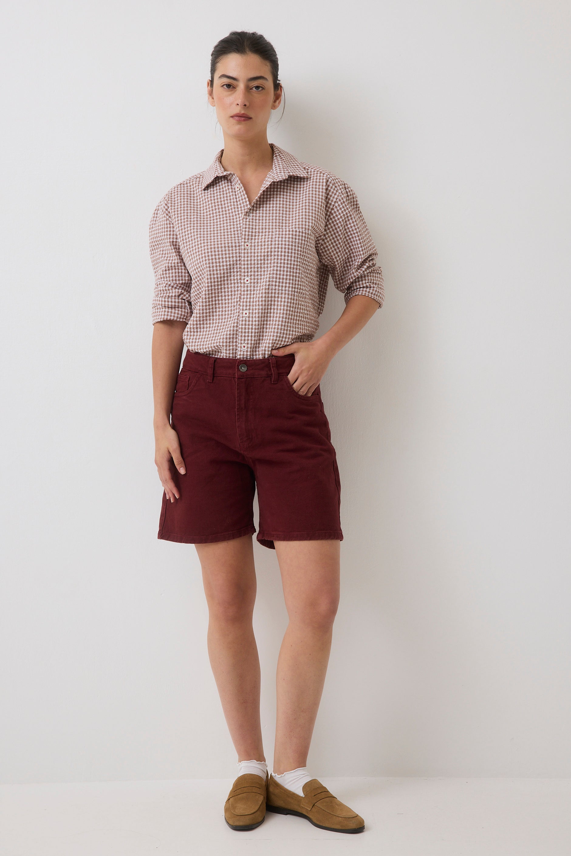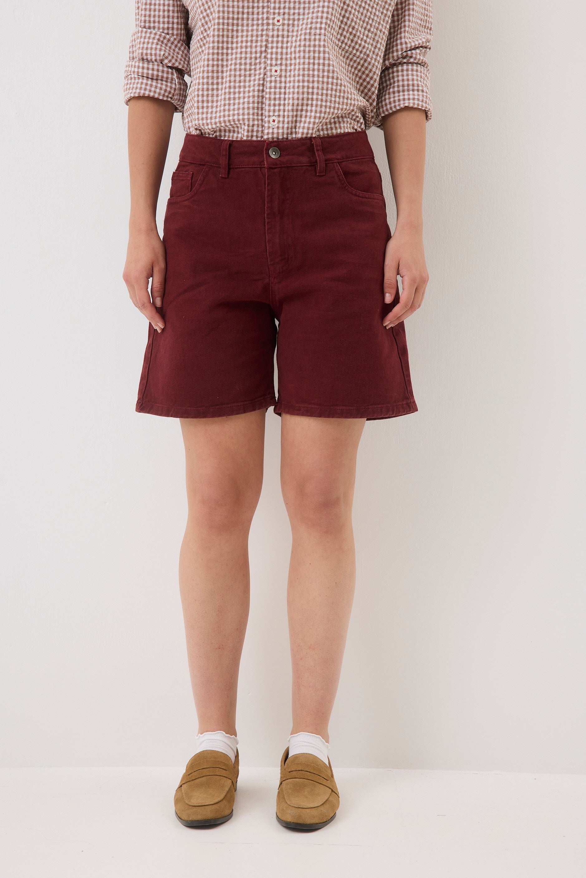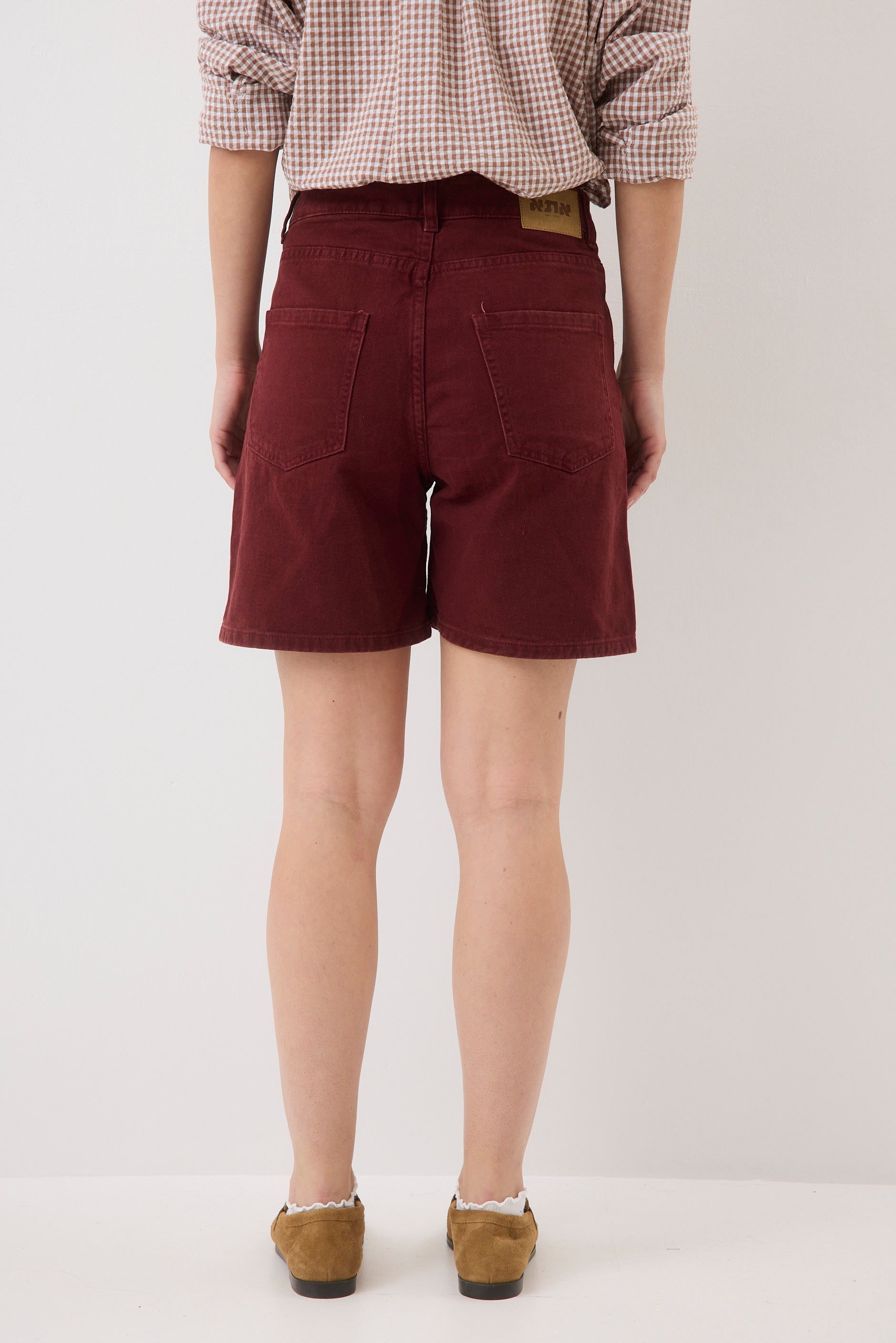 Fitted cotton shorts, with mid-rise waist. Five-pocket design. For a looser fit, take one size up.
