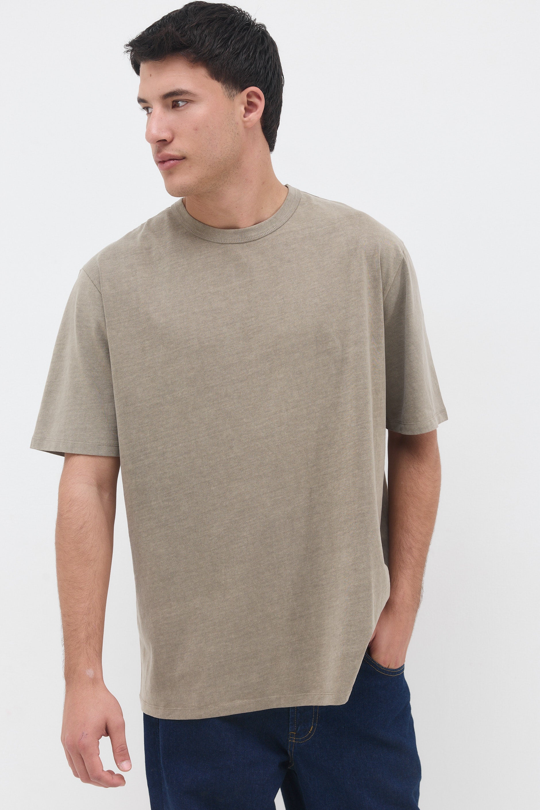 Ribbed T-shirt, emphasized stitching, in a straight cut with a round neckline.