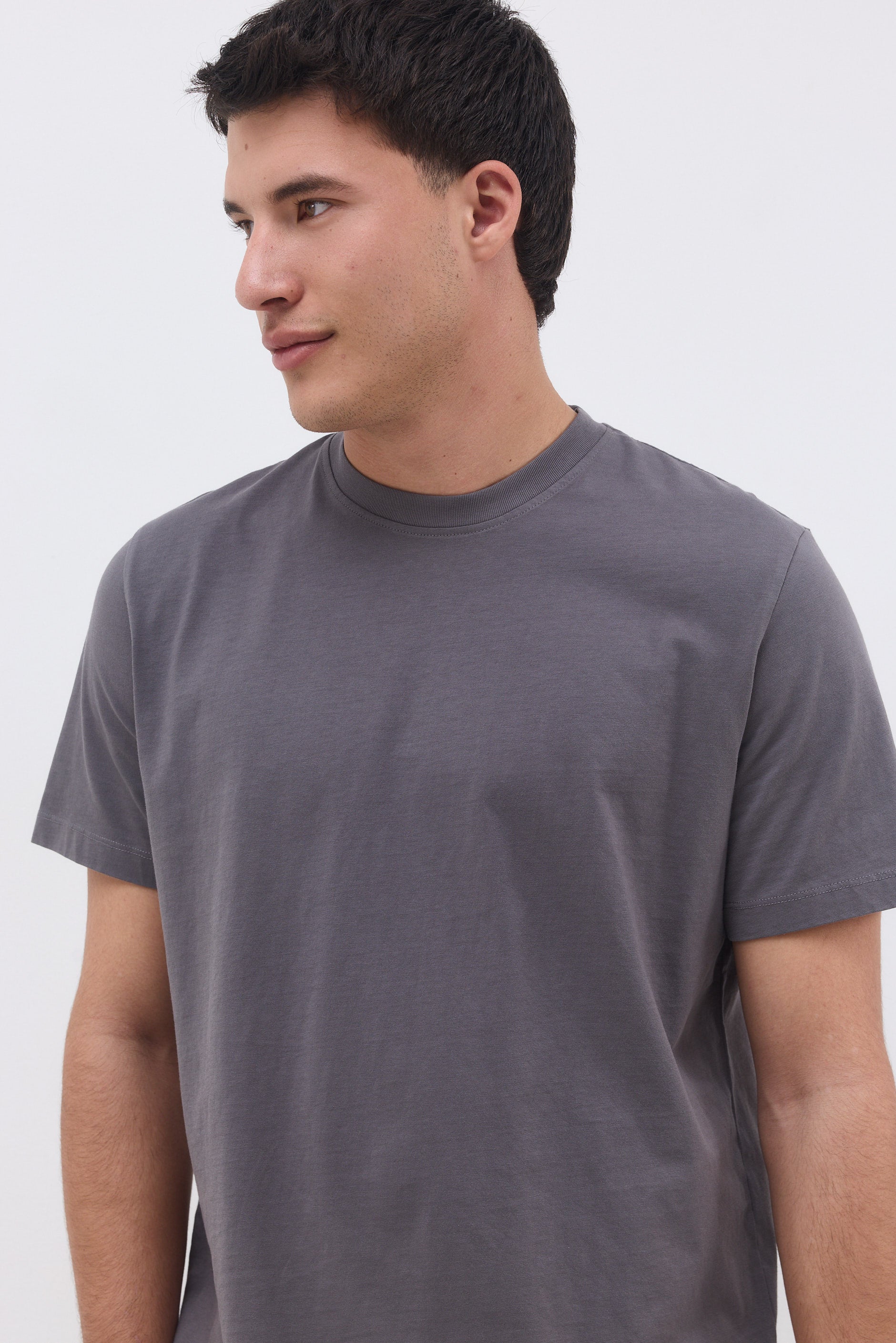 Slim-fit T-shirt with a round neckline and short sleeves.