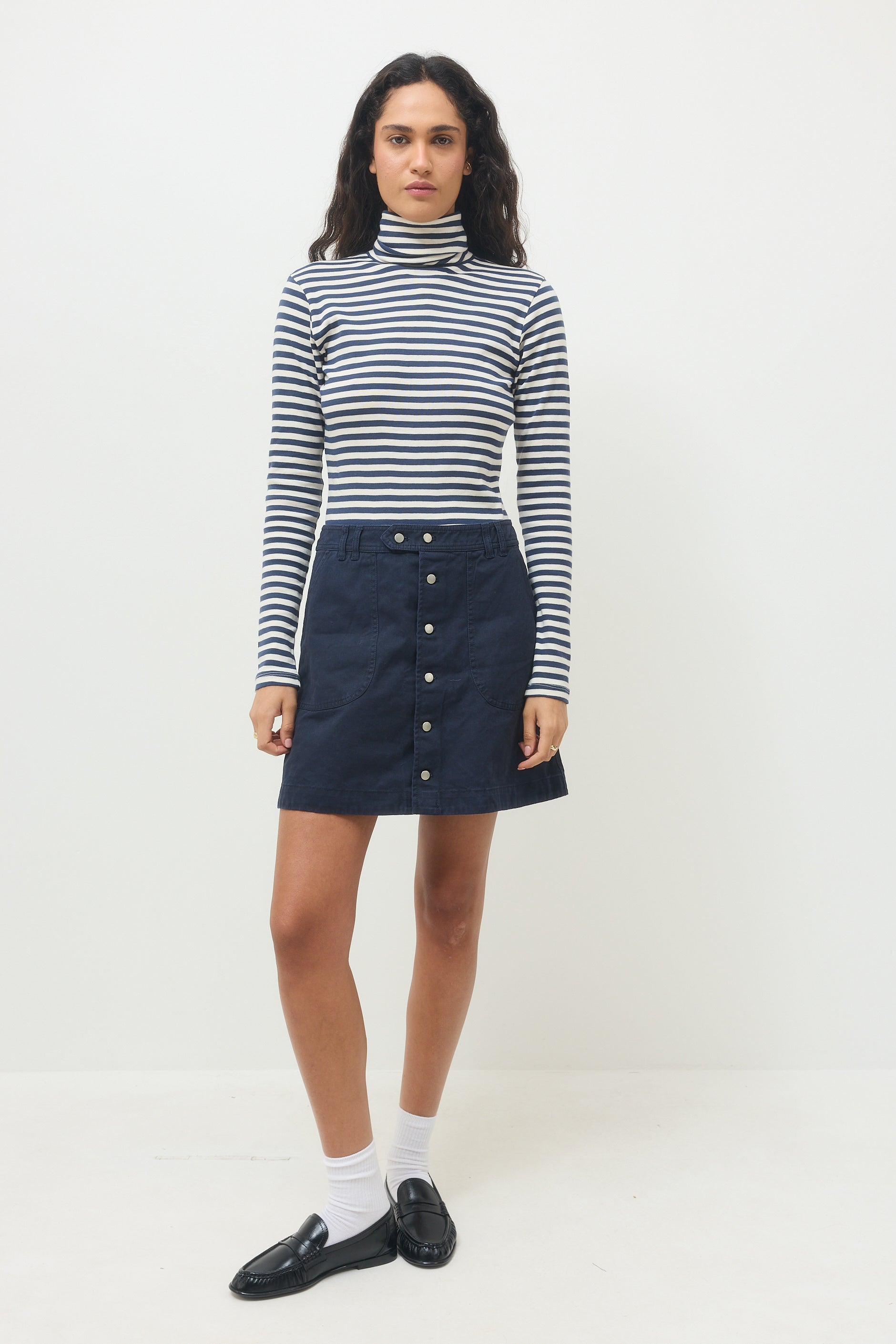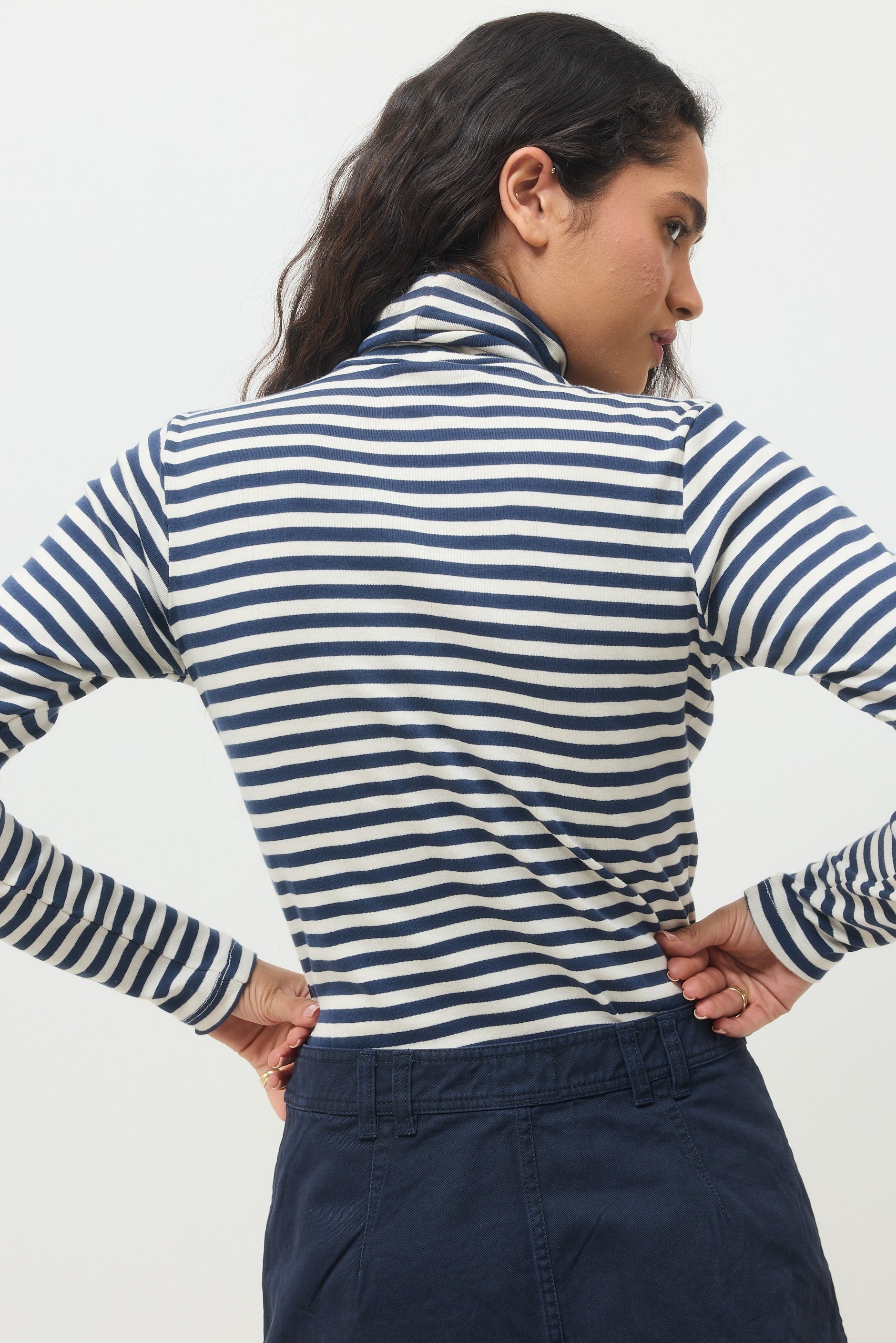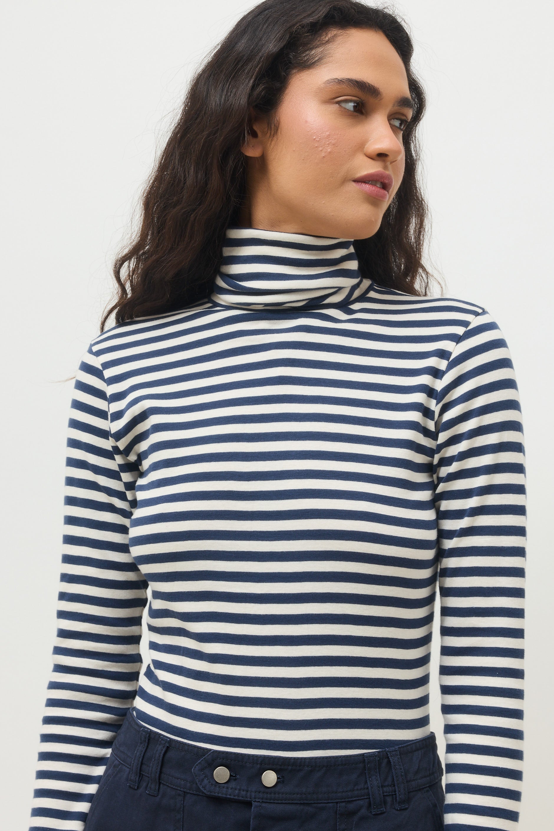 Fitted turtleneck shirt with a fold-over collar, made from fine rib fabric in a lace-like texture.