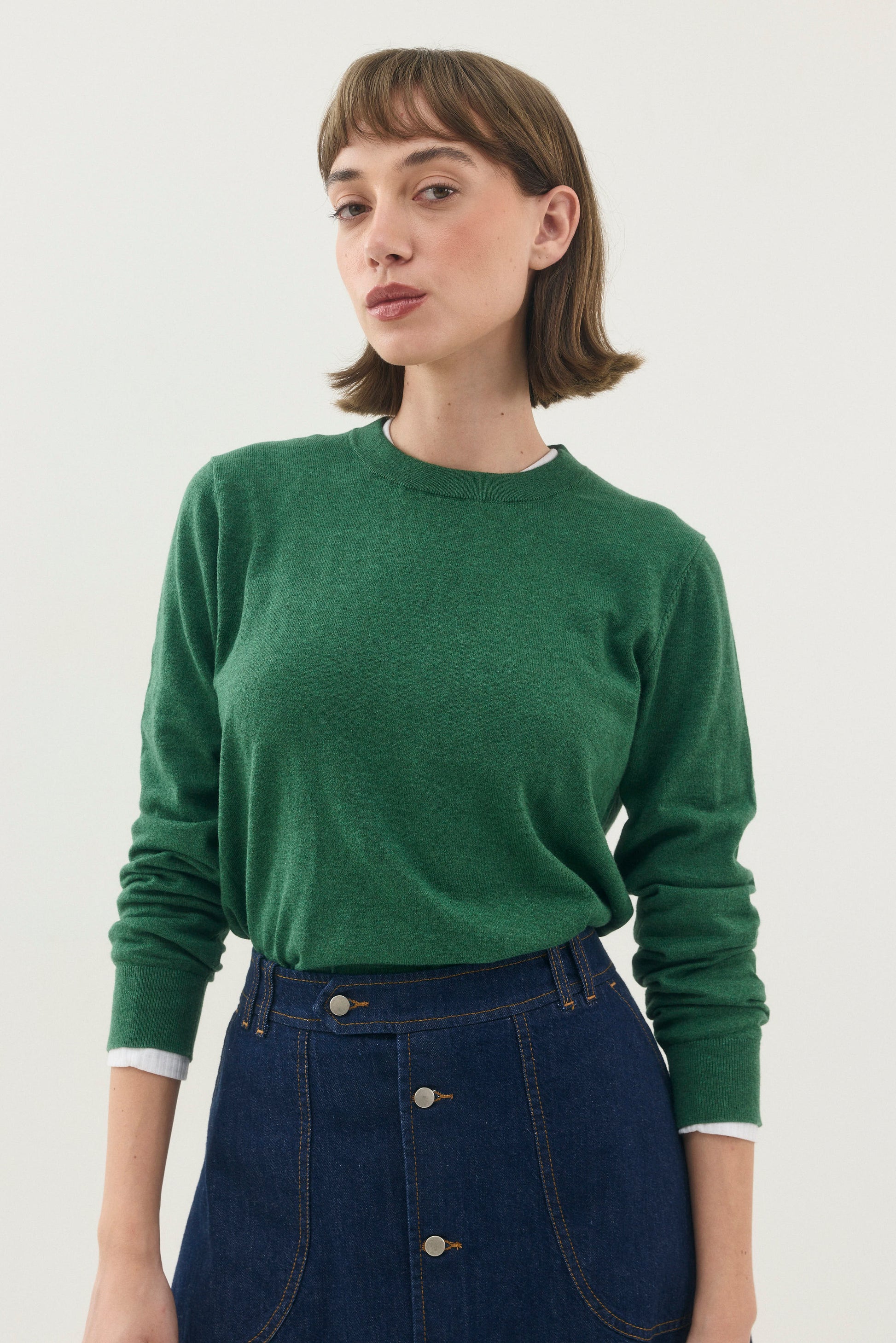 A long-sleeve knit with a boxy silhouette and a round neckline.